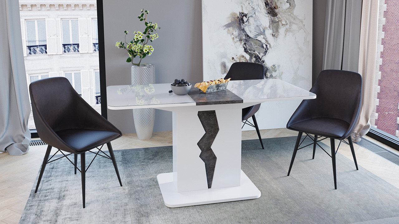 Стол Раздвижной «Шеффилд» исп. 1 Белый Глянец/Камень/ Д-1100/1417 x Ш- 701 мм x В-752 мм